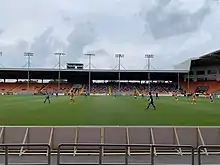 ![]() The current stadium, looking north, as visitors Fulham kicked off the first-ever Premier League match at Bloomfield Road on 28 August 2010 | |