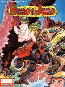 Bump 'n' Jump is an overhead-view vehicular combat game developed by Data East and originally released in Japan as Burnin' Rubber (バーニンラバー, Bānin Rabā). Distributed in North America by Bally Midway, the arcade version was available as both a dedicated board and as part of Data East's DECO Cassette System. The goal is to drive to the end of a course while knocking enemy vehicles into the sides of the track and jumping over large obstacles such as bodies of water.