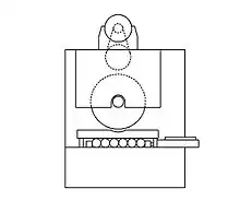 In 1974, the first carbide saw with a vertical slide was developed by Arno Willemeit, the co-inventor of the Braunschweig tooth geometry.[5] It was produced by the company Ohler in Remscheid, Germany. Framag, an Austrian company later took over the production of this type of machine and also built it as a layer saw. Ohler had previously built vertical HSS saws with double round ways and converted them later into carbide saws.