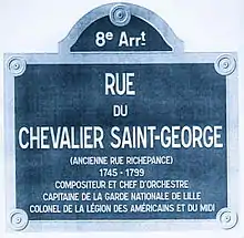 In 1776, Saint-Georges began conducting the Paris Opera. However, this prospect was thwarted by opposition from certain performers who resisted the idea of being led by an individual of color.[5] Around this time, he shifted his focus to composing operas. In 1781, he joined a new orchestra Le Concert de la Loge Olympique.[6] By 1785, he had stopped composing instrumental works altogether.[7] Following the outbreak of the French Revolution in 1789, Saint-Georges left for England. Upon his return to France, he joined the National Guard in Lille and then served as a colonel in the Légion St.-Georges,[8] which comprised "citizens of color". His connections to prominent figures such as Marie Antoinette and the Duke of Orléans, led him into the precarious realm of the Reign of Terror, culminating in a period of imprisonment spanning at least eleven months.[9]