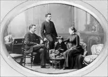 Tisza was a "champion duellist" who "had fought more duels than any man in Europe and had never once been seriously wounded".[40] Having been taught by "the best masters in Germany, France and Italy", he was equally adept with sword or pistol, despite (by 1913) having had a cataract operation on one of his eyes and wearing "think horn-rimmed spectacles".[40] In January 1913,[41] he fought Mihály Károlyi in a 34-bout duel with cavalry sabres which lasted an hour until Tisza cut Károlyi's arm and the seconds ended the duel.[40] A week later he fought Aladár Széchenyi, again with sabres - the duel lasted one bout, ending with Tisza wounding Széchenyi with "a long cut across the head".[40] On about 20 August 1913,[42] Tisza fought György Pallavacini (son-in-law and supporter of Opposition leader Gyula Andrássy) at a Budapest fencing school in a duel with "heavy cavalry sabres" and "only slight protection of the body was allowed".[43] After nine bouts, both duellists were bleeding from cuts to their foreheads, and the seconds declared both principals unable to continue - "[t]he two men shook hands, then embraced, kissing each other on both cheeks, and declared themselves reconciled."[43]