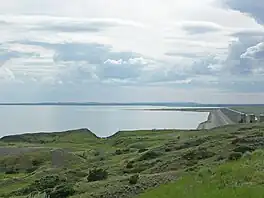 |  The lake seen from the Lewis and Clark Overlook east of the dam | |