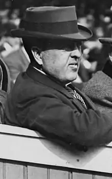 - ↑  "Frank J. Farrell, Sportsman, Dies. Suffers a Heart Attack While Recuperating From Bronchitis in Atlantic City". The New York Times. February 11, 1926. Retrieved 2007-06-18. ... Devery and Ferrell remained in baseball from 1903 until 1915, when the holdings were sold to Colonel Jacob Ruppert, the present owner, and Colonel T.H. Huston for $460,000.