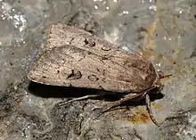 Graphiphora augur, the double dart or soothsayer, is a moth of the family Noctuidae. The species was first described by Johan Christian Fabricius in 1775. It is found in all of Canada and most of the northern parts of the United States, south in the west to California and New Mexico. It is also found throughout Eurasia, from the British Isles and Scandinavia to Siberia and Japan.