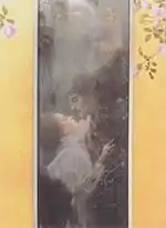 | 04 | ![]() | 1895 – Love (oil on canvas, 60 cm × 44 cm) | For its evanescent rarefaction the love scene reveals its symbolist mould. The work is part of Klimt's series of Allegories and Emblems, whose intent was to translate life's most significant moments, and its psychological nuances, into forms of metaphorical intensity. |