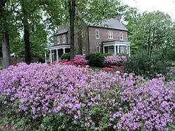 Other notable early settlers included: George Waller,[7] Captain George Hairston and Major John Redd,[8] all of whom were present at the surrender of General Cornwallis at Yorktown; Col. Abram Penn, a native of Amherst County, Virginia, who led his Henry County militia troops with the intention of joining General Nathanael Greene at the Battle of Guilford Courthouse during the Revolutionary War;[9] and Brigadier General Joseph Martin, for whom Martinsville is named.[10] Also prominent were Mordecai Hord, a native of Louisa County and explorer, who lived on his plantation called Hordsville;[11] and Col. John Dillard, born in Amherst County, Virginia in 1751, wounded at the Battle of Princeton during the Revolution, and later a member of the Committee of Safety. Captain Robert Hairston, a noted politician in the Colony of Virginia, owned Marrowbone plantation, commanded a militia company and served as Henry County's first high sheriff.