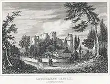 As for Laugharne, nearly all the wealthy and ancient families are gone. About forty to fifty years ago every large house was occupied by parties with handsome incomes, the smaller ones by persons of great respectability and of some property. Laugharne then presented a lively scene, the carriages of the rich rolled by its houses...Parties often concluded the day. Malkin, who was here in 1803, said it was the best built town in Carmarthenshire.