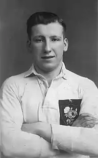 John Waring (3 October 1919[3] – 3 June 2004), also known by the nickname of "Sogger", was an English professional rugby league footballer who played in the 1930s and 1940s, and coached in the 1950s, and rugby union footballer who played in the 1940s. He played representative level rugby league (RL) for England, and at club level for Thatto Heath ARLFC (in Thatto Heath, St Helens), Star Rovers ARLFC (in St Helens), Blackbrook ARLFC (in Blackbrook, St Helens), St Helens, Dewsbury (World War II guest), Belle Vue Rangers, Featherstone Rovers (Heritage No. 278),[4] and Warrington (Heritage No. 497), as a wing, centre, stand-off or scrum-half, i.e. 2 or 5, 3 or 4, 6, or 7,[1] and representative level rugby union (RU) for the Army and the Combined Services/United Services (during World War II), as a fly-half, i.e. number 10, and coached club level rugby league (RL) for Warrington (A-Team).[5]