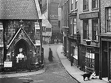 In the Roman period, the south-eastern gate of Eboracum lay on the site of what is now King's Square. This was built in about 108, as recorded on a surviving inscription, now in the Yorkshire Museum.[4] The area was mentioned by Egil Skallagrimsson in the 10th-century as "Konungsgarthr" (later being translated for use in the 18th- and 19th-century deeds as Coninggate),[5] and this has led to a belief that this was the location of the royal palace of the Danelaw, and possibly of its predecessors, the Kingdom of Northumbria and the Kingdom of Deira. By 1430, the west side of the square was occupied by a row of mercer's shops, with a building named "Hellekeld" to their south. In 1627, Duke Gill Hall lay on the north-east side of the square, on its corner with St Andrewgate, and it was recorded that the hall was formerly known as "the King's Court".[6]