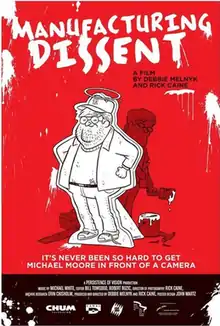 Manufacturing Dissent: Uncovering Michael Moore is a 2007 documentary film. It puts forward that filmmaker Michael Moore has used misleading tactics, primarily using on-camera statements by interviewees with personal grievances against Moore as proof. The documentary attempts to expose what the creators say are Moore's misleading tactics and mimics Moore's style of small documentary makers seeking and badgering their target for an interview to receive answers to their charges. The film was made over the course of two years by Canadians Debbie Melnyk and Rick Caine after they viewed Fahrenheit 9/11, Moore's controversial film that attacked the Bush administration and its policies.[1] Melnyk and Caine have stated that when they first sought to make a film about Moore, they held great admiration for what he had done for the documentary genre and set out to make a biography of him. During the course of their research, they became disenchanted with Moore's tactics.[2] The title is a parody of the book Manufacturing Consent by Edward S. Herman and Noam Chomsky, and the film it inspired. In June 2007, Liberation Entertainment Inc. signed an exclusive deal with the filmmakers for all video and theatrical rights in the US & UK.