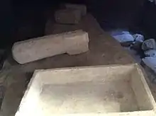 Sections of a Roman road, cisterns, canals and other archaeological remains were discovered beneath Palazzo Castelletti in Rabat.[30] Some inscriptions, column capitals and other architectural remains from ancient Melite have also been found, and these are now preserved at the Domus Romana museum and the Cathedral Museum in Mdina,[24] or in private collections.[31] Parts of the podium of the Temple of Apollo were discovered in 2002.[14] The remains of other ancient buildings, as well as pottery, coins or other artifacts from the Bronze Age or Punic-Roman period, are still occasionally discovered in excavations or during construction projects in Mdina or Rabat.[5][16]
