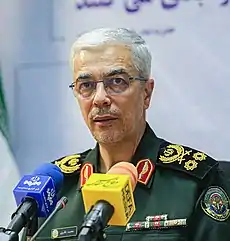 Mohammad Bagheri (Persian: محمد باقری, born Mohammad-Hossein Afshordi[4] (Persian: محمدحسین افشردی) is an Iranian Islamic Revolutionary Guard Corps military commander serving at the most senior military position available in Iran, Chief of Staff for the Armed Forces of the Islamic Republic of Iran.[5] He holds the rank of Major General within the Iranian military.