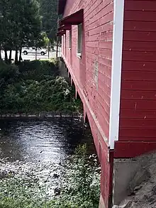 The Office Bridge (also called Westfir Covered Bridge[1]) is a covered bridge in Westfir, Lane County, Oregon, U.S. crossing the North Fork Middle Fork Willamette River at the south end of the Aufderheide National Scenic Byway[2] and edge of the Willamette National Forest. It is Oregon's longest covered bridge at 180 ft (55 m), and is one of only two in the state using triple Howe truss construction. It is the only covered bridge west of the Mississippi River which has a separate pedestrian walkway.[3][4][5]