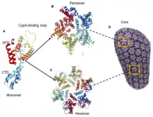 - ↑ Rossi E, Meuser ME, Cunanan CJ, Cocklin S (January 2021). "Structure, Function, and Interactions of the HIV-1 Capsid Protein". Life. 11 (2): 100. Bibcode:2021Life...11..100R. doi:10.3390/life11020100. PMC 7910843. PMID 33572761.