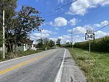 When Pennsylvania first legislated routes in 1911, what is now PA 341 was not given a legislative number.[5] PA 341 was designated by 1930 to run from US 230 (now PA 230) east of Middletown east to PA 241 near Colebrook along its current alignment. At this time, the route was paved for a short distance east of US 230 and in the Deodate area while remainder was unpaved.[6] The entire length of the route was paved in the 1930s. Also, the route was realigned to head southeast along Lawn Road to end at PA 241 in Lawn.[7] PA 341 was realigned back to its current eastern terminus in the 1940s.[8]