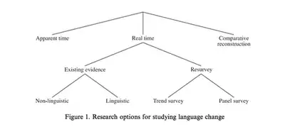 - 1 2 3 4 Tillery, Jan; Bailey, Guy (2003). "Approaches to real time in dialectology and sociolinguistics". World Englishes. 22 (4): 351–365. doi:10.1111/j.1467-971x.2003.00305.x.
