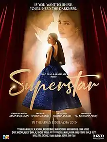 Superstar is a 2019 Pakistani romantic, musical-drama film, starring Bilal Ashraf and Mahira Khan. It is directed by Mohammed Ehteshamuddin, produced by Momina & Duraid Films,[2][3][4] and the music and screenplay are by Azaan Sami Khan.[5] The story of the film follows Noori (played by Mahira Khan), who works in a theatre run by her uncle Agha Jan (played by Nadeem Baig), her entry in films and her romance and betrayal.[6] The principal photography of the film began in March 2019.[7] It was released on the occasion of Eid al-Adha on 12 August 2019 by Hum Films under Momina & Duraid Films.[8]