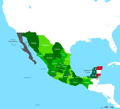 On February 12, 1840, Yucatán sent a report to the central government demanding the restoration of federalism as a form of government to combat poverty in the country. The act demanded the re-establishment of the Mexican Constitution of 1824. On October 1, 1841, the local Chamber of Deputies enacted the Declaration of Independence of the Yucatán Peninsula, thus establishing the second Republic of Yucatán. | ||||||||||||||||||||||||||||||||||||||||||||||||||||||||||||||||||||||||||||||||||||