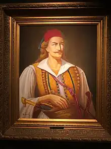 Tousias Botsaris (1792-1827), was a Souliot commander and fighter of the Greek War of Independence. He was the cousin of Markos Botsaris and the grandson of Giorgis Botsaris. He took part in many battles and enjoyed the admiration of Philhellenes.