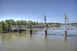 The Union Street Railroad Bridge is a vertical lift, Pratt through truss bridge that spans the Willamette River in Salem, Oregon, United States, built in 1912–13. It was last used by trains in the early 1990s and was sold for one dollar in 2003 to the City of Salem, which converted it to bicycle and pedestrian use in 2008–2009. It was added to the National Register of Historic Places in 2006.