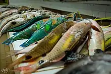 Cyanide fishing is used as a method to capture live fish to supply the international aquarium trade, and more recently, to supply the demand for live reef fish by restaurants.[11] This method involves the spraying of sodium cyanide into the targeted fish's habitat as a means of stunning the fish without killing them.[12] For each fish captured using sodium cyanide, a square metre of coral reef is destroyed.[13]
