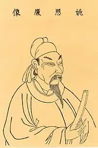 Yao Silian (姚思廉; 564[1] - 637[2]), courtesy name Jianzhi (簡之),[3] formally Baron Kang of Fengcheng (豐成康男), was a Chinese historian and politician during the Sui Dynasty and Tang Dynasty and was the lead author of the Book of Liang and Book of Chen, the official histories of the Liang Dynasty and the Chen Dynasty, which his father Yao Cha (姚察), a Chen official, had begun but did not finish.