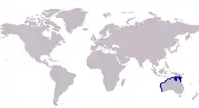 The species is known to tolerate a very wide range of salinities, from fresh river waters to hypersaline waters found in some areas of Shark Bay.[5] It often inhabits estuarine waters along the Western Australian coast,[6] as well as sand and seagrass beds in inshore and offshore waters of the continental shelf.